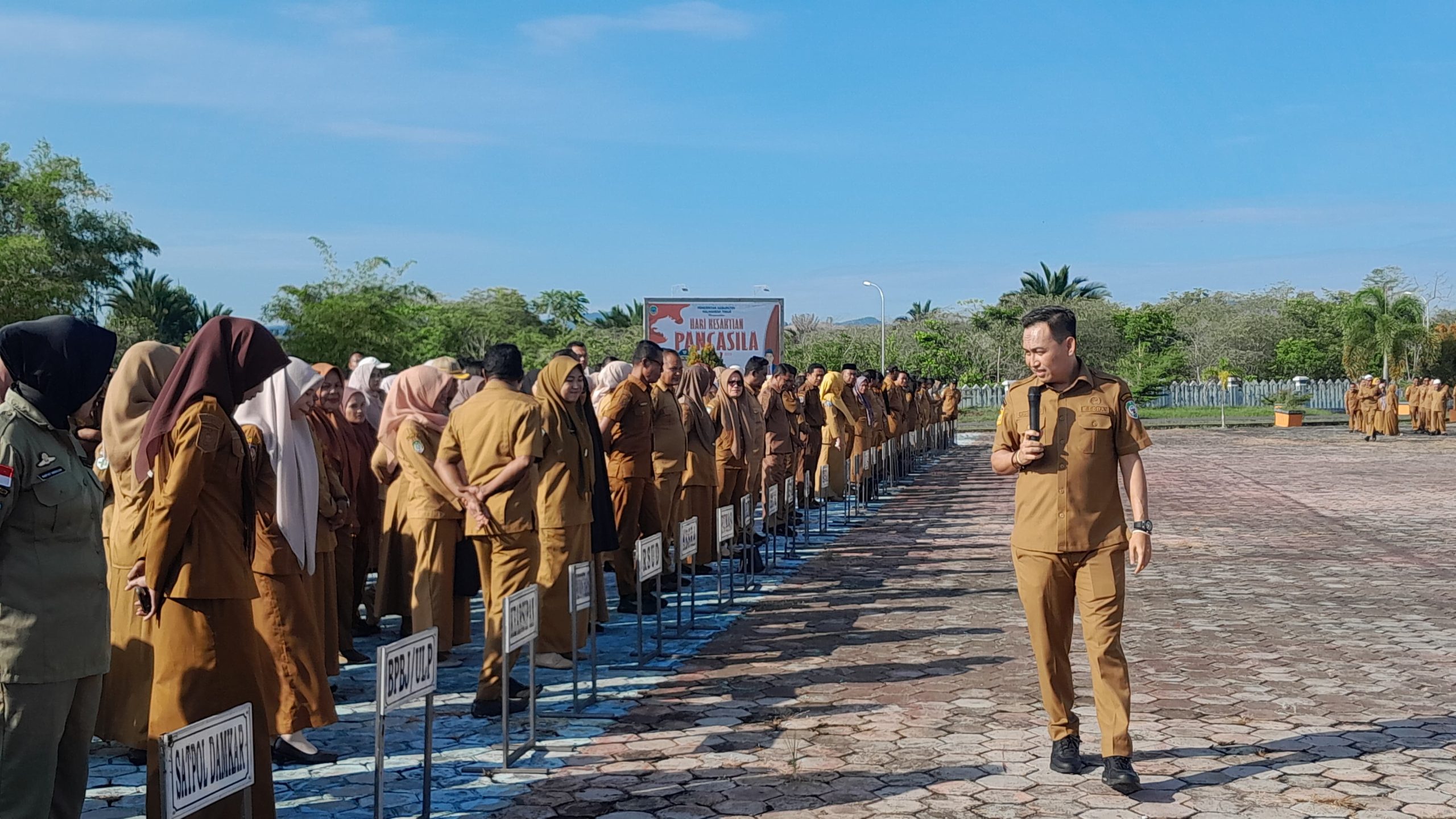 Sikap tegas Sekda Halmahera Timur dihadapan seluruh pimpinan OPD dan pegawainya saat dirinya memimpin langsung apel pagi di depan Kantor Bupati.