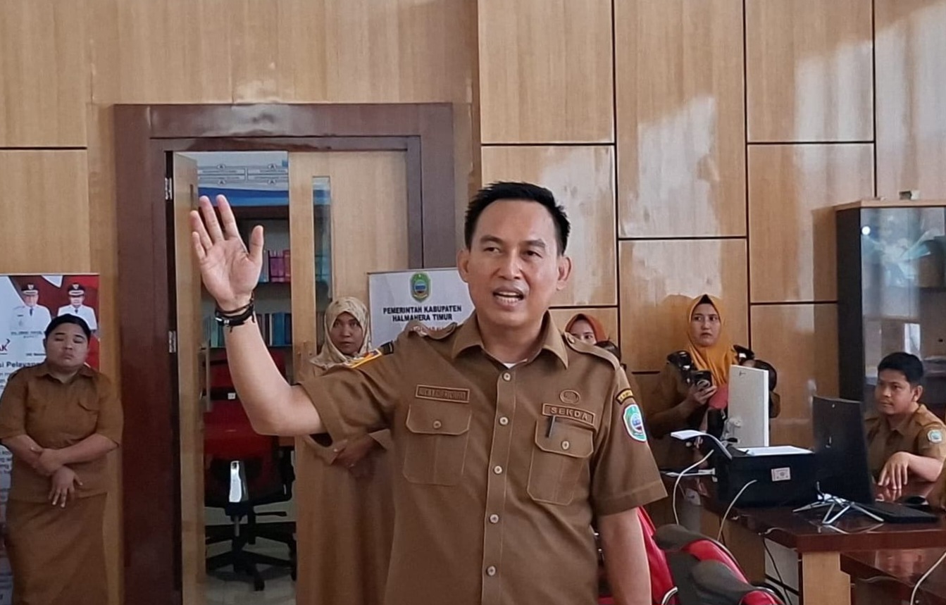 Sekertaris Daerah (Sekda) Pemda Halmahera Timur, Ricky Chairul Richfat ditemui wartawan di Kantor Bupati, Selasa (10/3/2026). Memberikan informasi terkait perihal yang dimaksud.