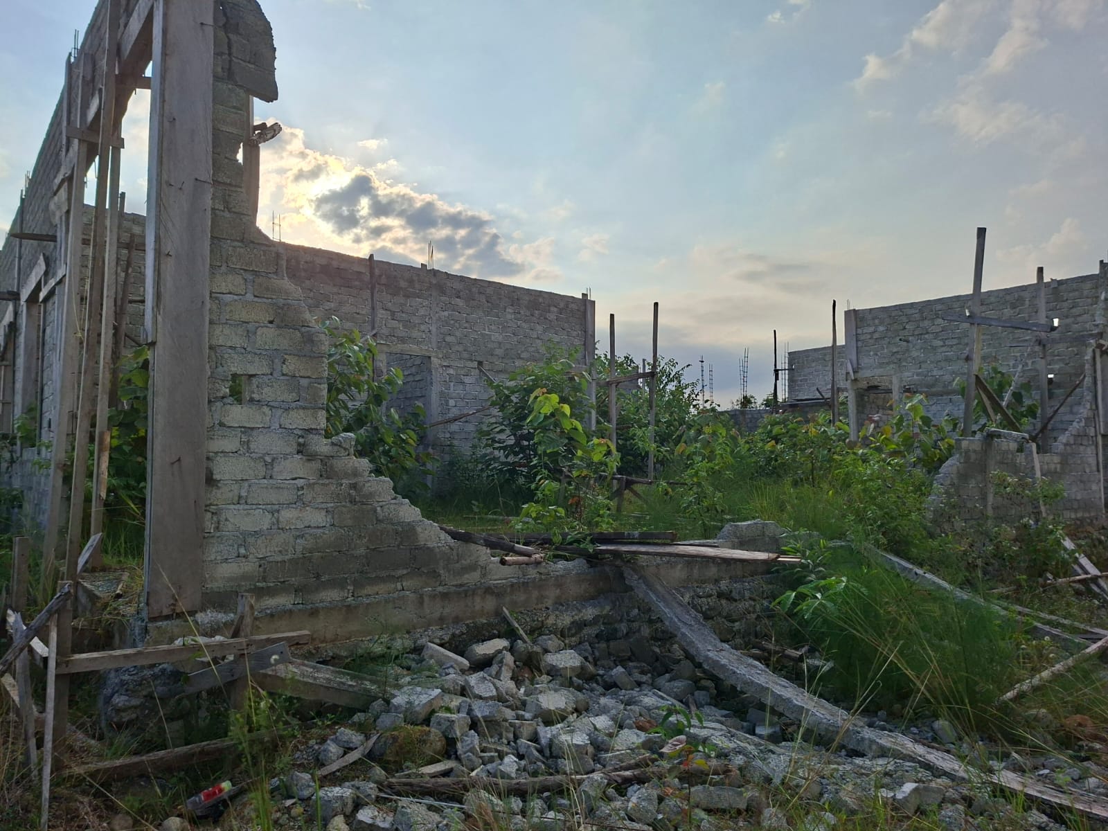Berdasarkan pantauan Bacanesia.com di lapangan, kondisi bangunan dapur tersebut tampak terbengkalai. Sebagian dinding sudah ambruk, area sekitar dipenuhi rumput dan pepohonan, bahkan tidak ada aktivitas pekerja dalam beberapa waktu terakhir, Kamis (16/4/2026).