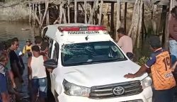 BREAKING NEWS: Satu Unit Mobil Ambulance Bawa Jenazah Jatuh Dari Jembatan Nek-nek Halmahera Timur