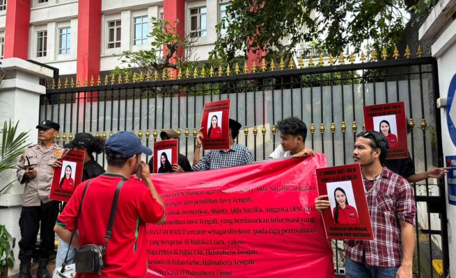 HIPMI-HALTIM Jakarta Aksi di Kantor Pusat PDI-P Desak Evaluasi Kader Jadi Direktur Tambang di Malut