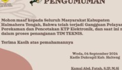 Server Dukcapil Alami Kerusakan, Pelayanan KTP di Halmahera Tengah Dihentikan